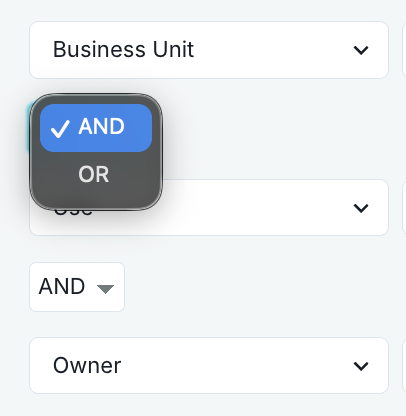 Example: Use case is Attrition/Churn Management AND (Business Unit is Commerical Banking OR Business Unit is Retail Banking)
