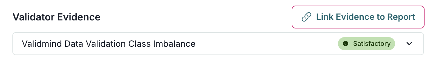 Under the Class Imbalance Assessment sub-section, locate Validator Evidence then click Link Evidence to Report.