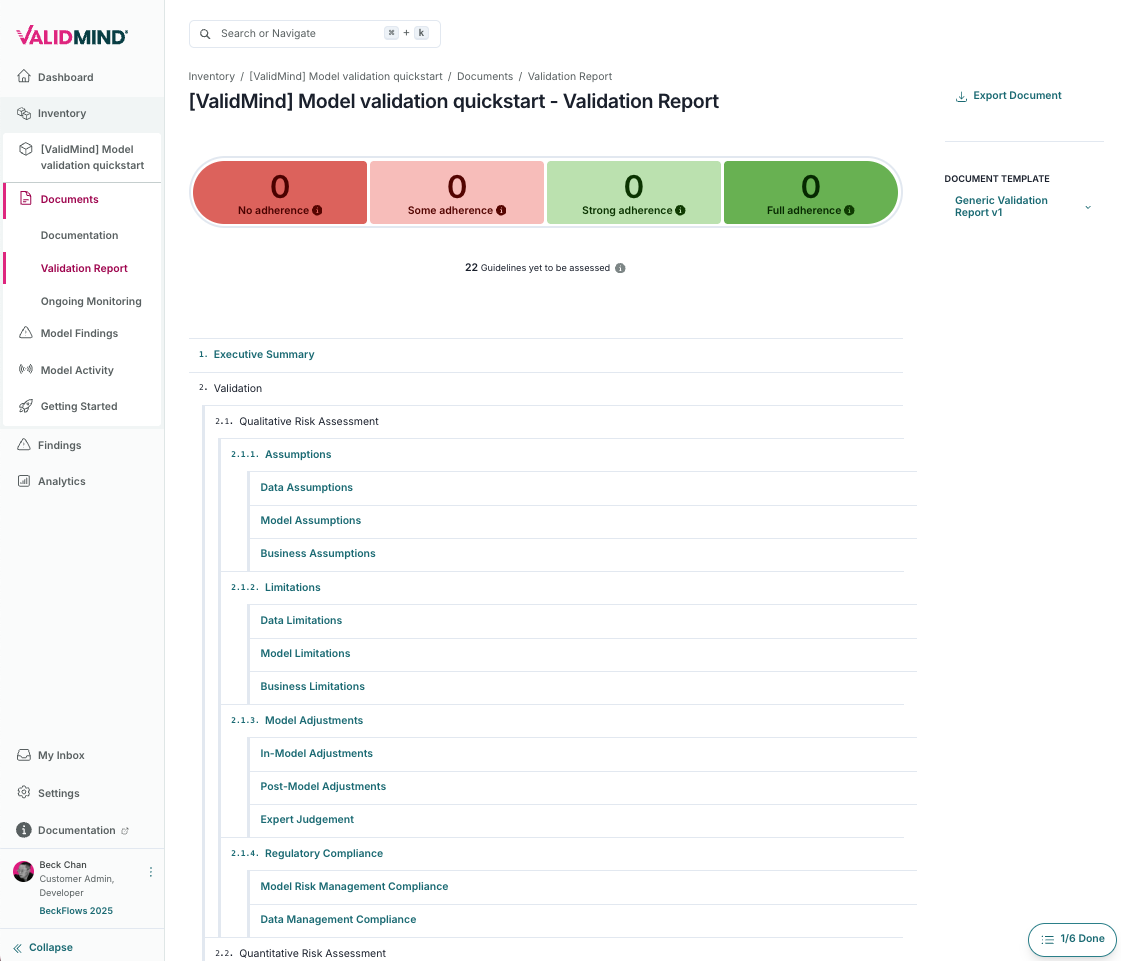 - Your model’s validation is broken down into sections, defined by your validation report templates.9