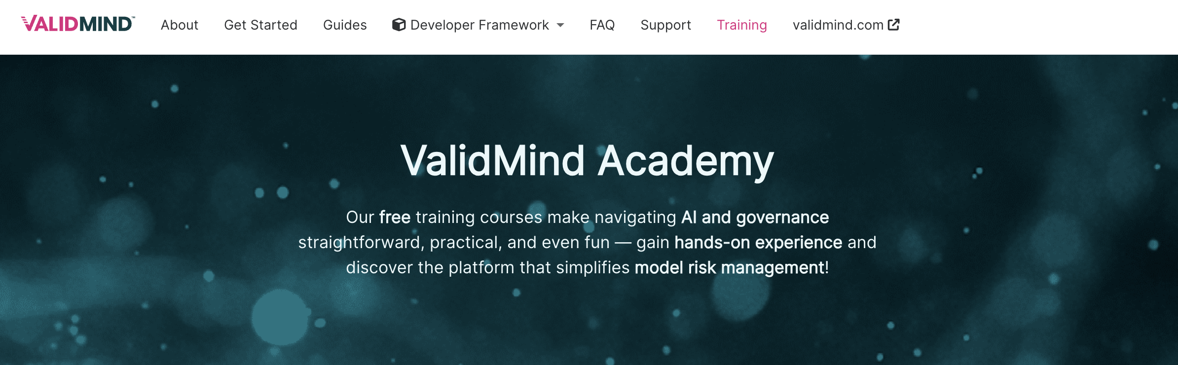 ValidMind Academy top navigation