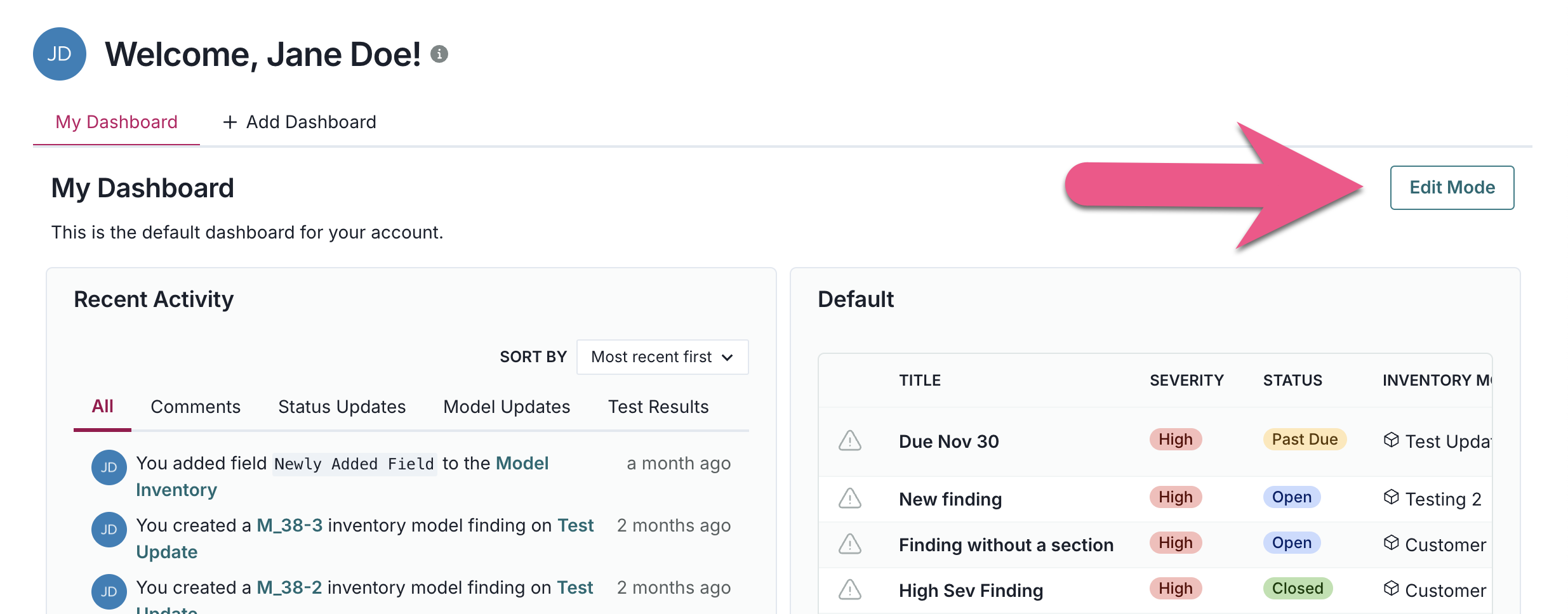 We’ve streamlined dashboard configuration with dedicated view and edit modes. Click Edit Mode to make changes, then click Done Editing to save and return to view mode: