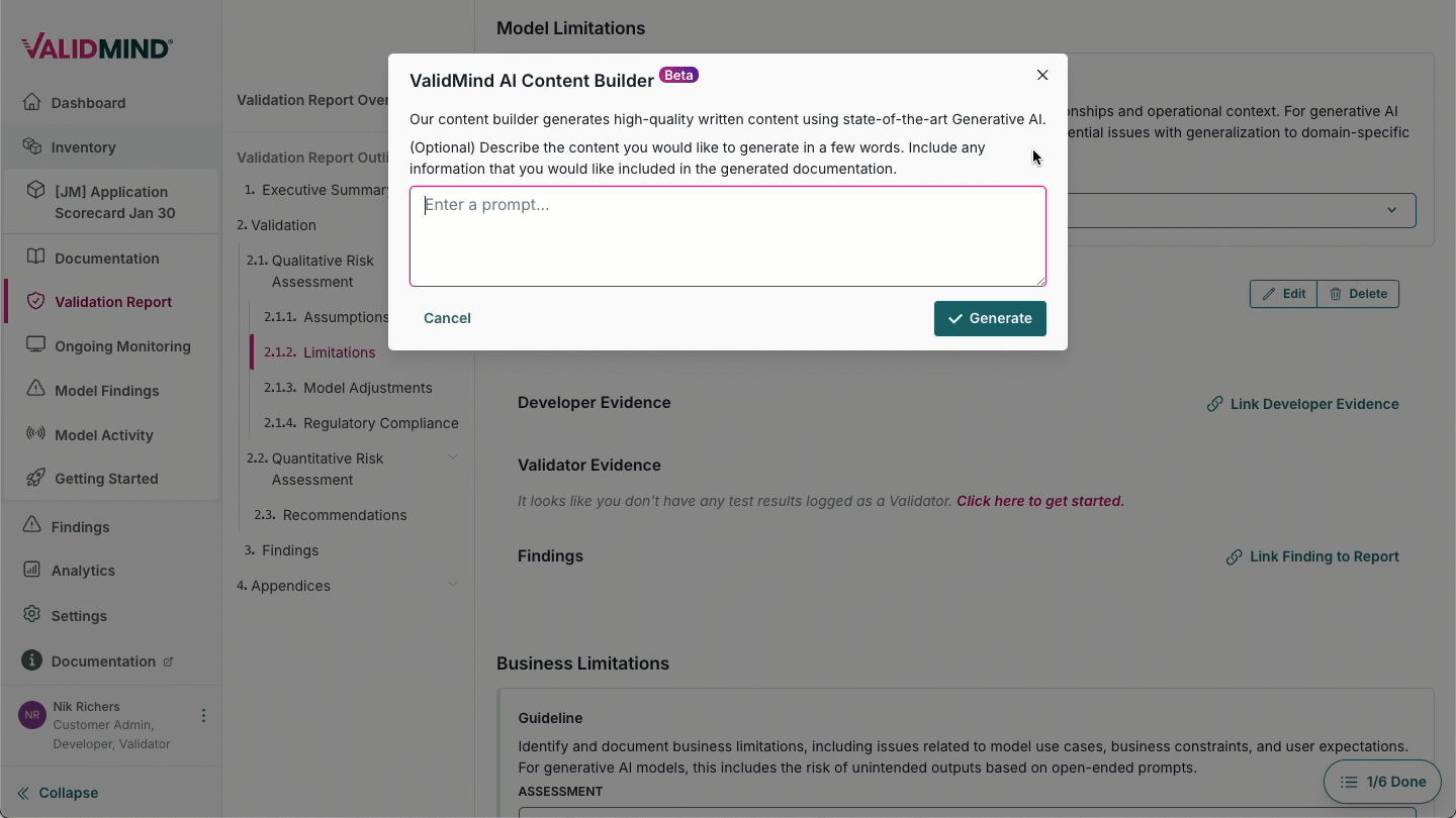 Risk assessment generation has been enhanced to allow you to provide an optional prompt before starting text generation. This feature lets you guide the output, ensuring that the generated text aligns more closely with your specific requirements.