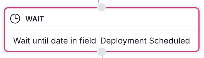 In this example, the next step on the workflow waits until the timestamp indicated in a deployment scheduled date time field:18